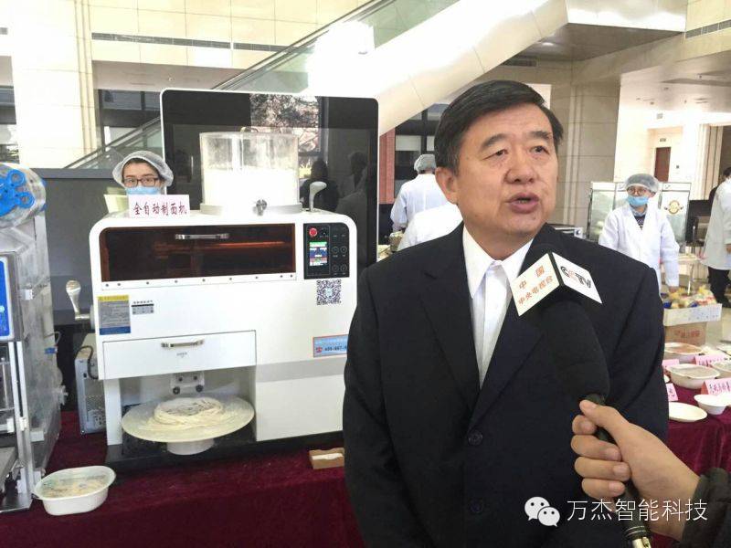 (中國農科院張泓博士向央視介紹萬杰智能鮮面機)