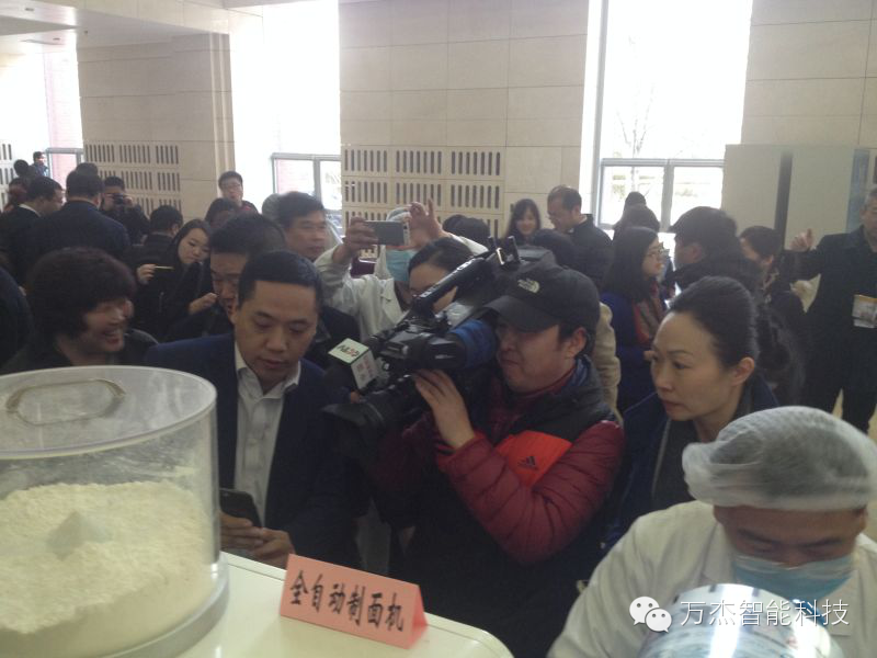 董事長王曉杰向央視等媒體朋友介紹智能鮮面機)
