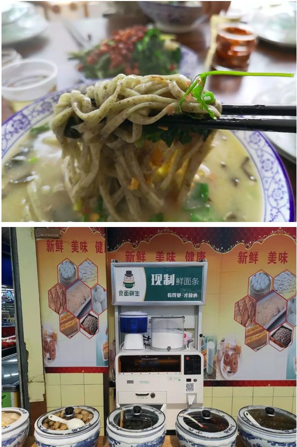 在許昌有很多只賣雜面條的餐館,店里以主打雜面條為主,這類餐館就因為賣這種雜面條備受歡迎。而且,雜面條既美味又營養,逐漸被越來越多的消費者認可。其中,許昌的野菜黑豆面和琛晟客來香雜面館是兩個新開業不久的雜面館。店老板表示,之所以選用智能鮮面機,一方面,可以有效的節省人工,降低成本;另一方面,雜面條的配比很重要,智能鮮面機現吃現做,可以輕松的調制面條和雜糧的比例,有效的保障面條的口感。此外,面條吃多少做多少,沒有浪費,為他們解決了做面的大難題。