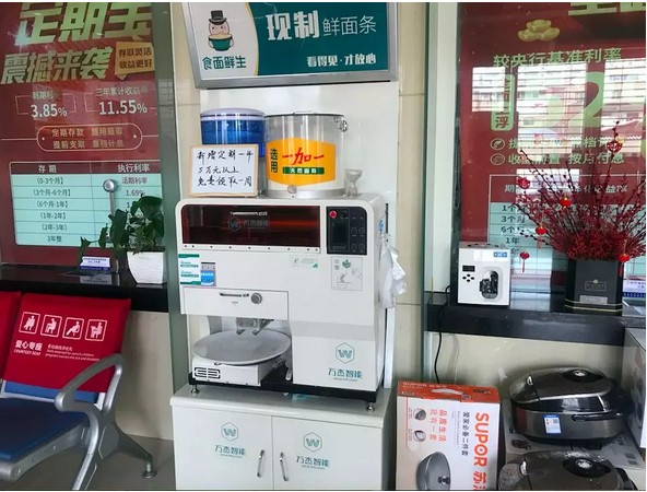 智能鮮面機入駐銀行是名副其實的創新實踐。把智能鮮面機和銀行關聯起來,可以說是一個大膽的嘗試。在走訪的過程中,中原銀行的工作人員表示,本地人家家戶戶都愛吃面條,銀行為儲戶們贈送傳統的禮品外,智能鮮面機現做的鮮面條可以成為另一種不錯的禮品補充,能夠有效的維護客戶關系。此外,工作人員介紹到智能鮮面機是個好東西,符合健康生活的要求。現吃現做,原料看得見,面粉選用的也是大家放心的品牌,大伙兒都挺喜歡的。