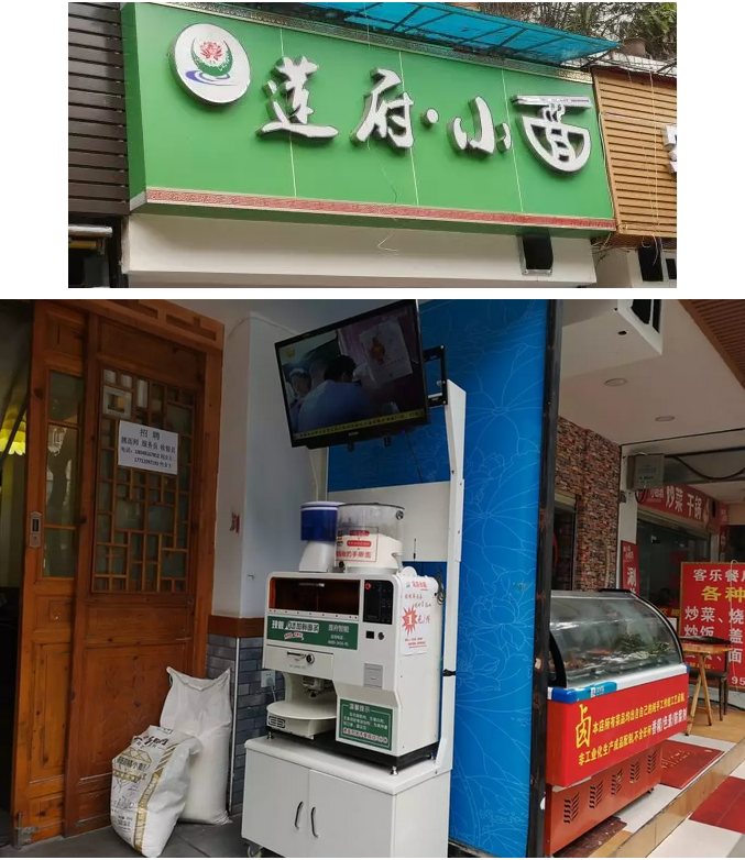 走訪黃總經營的連鎖面館——“蓮府小面”,從幾十米外,就能看到陳列在店門口的智能鮮面機吸引了絡繹不絕的食客。