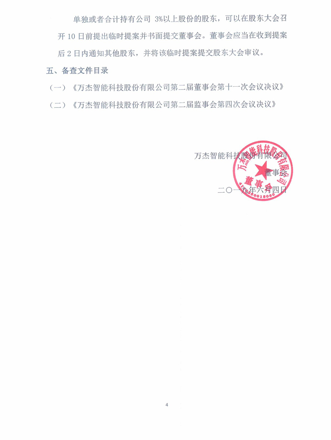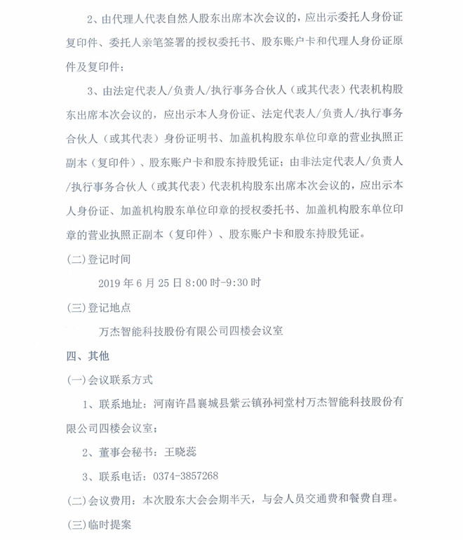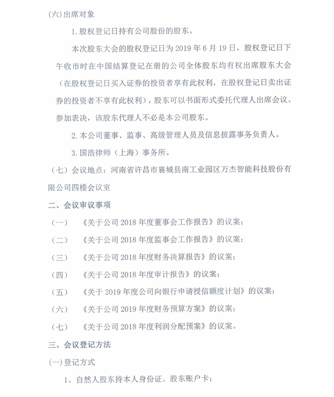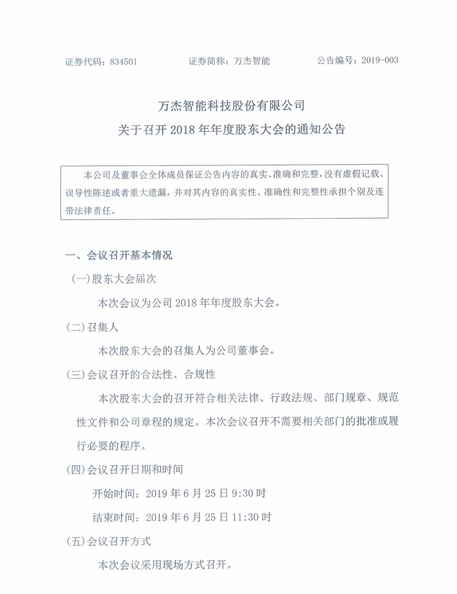 萬杰智能:關(guān)于召開2018年年度股東大會的通知公告