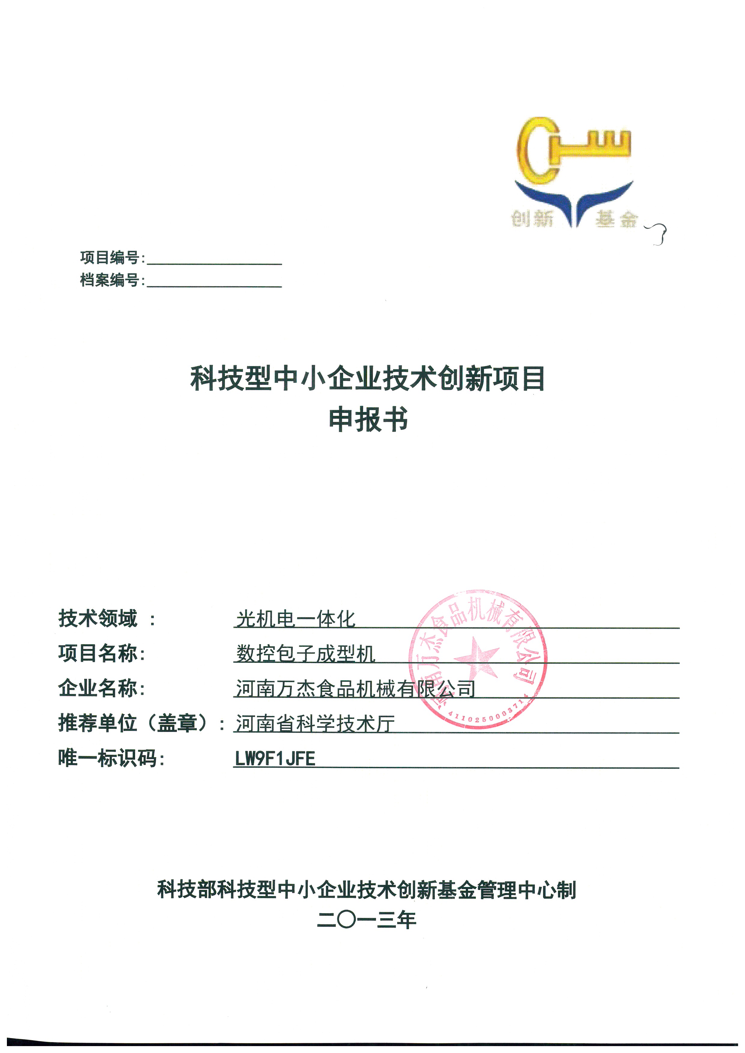 | 6月26日,河南萬杰歷時一年半申報的“數(shù)控包子成型機”創(chuàng)新基金項目通過省級評審,獲支持資金10萬元,并推薦國家進行審核,有望獲得80萬元支持資金。